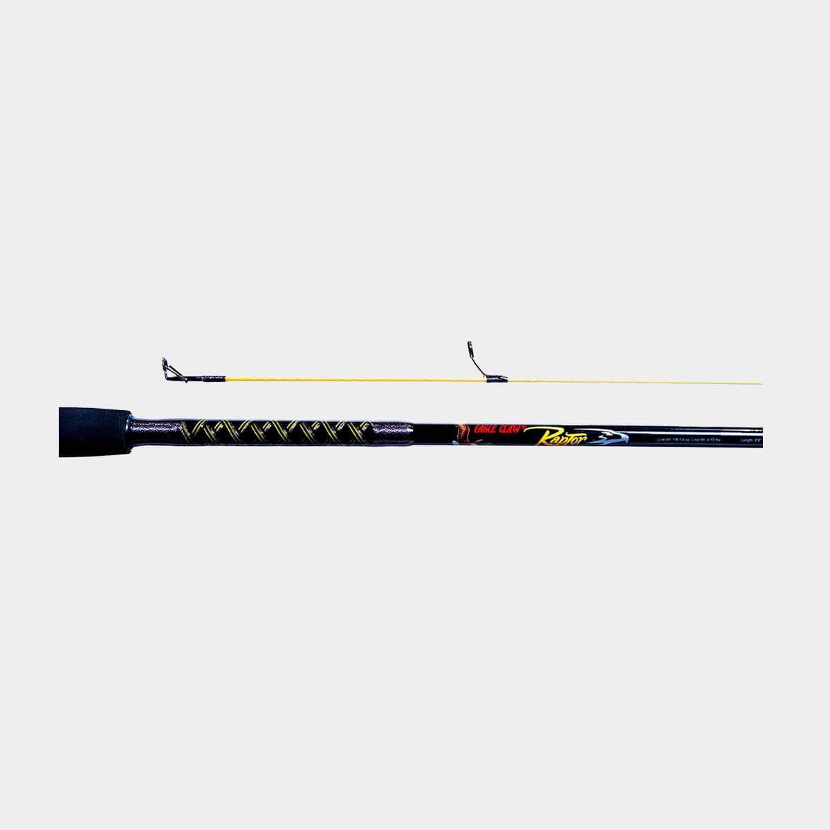 La Caña Eagle Claw Raptor 6’6″ es una caña ideal para Spinning. Fabricada el porta-carrete de grafito, guías de acero inoxidable con anillos de óxido de aluminio, brinda una mayor acción y sensibilidad a la hora de pescar, cuenta con dos tramos y su peso del señuelo es de 1/8-5/8 oz. Las anillas son del tipo Globo acero inoxidable y el porta-carrete DPS. Ideal para la pesca de modalidad Ultralight o trucha con señuelos. Incluye bolsa.