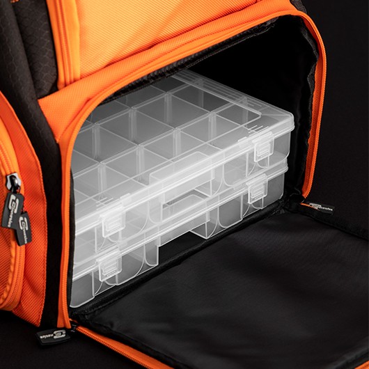 Ahora caminarás más cómodo, seguro y tus enseres viajarán contigo protegidos y totalmente organizados, listos para utilizar en cualquier momento. Incluye dos cajas de plástico con divisiones removibles para adaptarlas a tus distintos accesorios, anzuelos o señuelos. Las correas acolchadas sujetan bien y se sienten cómodas. Los tiradores de las cremalleras son de goma para prevenir la corrosión.