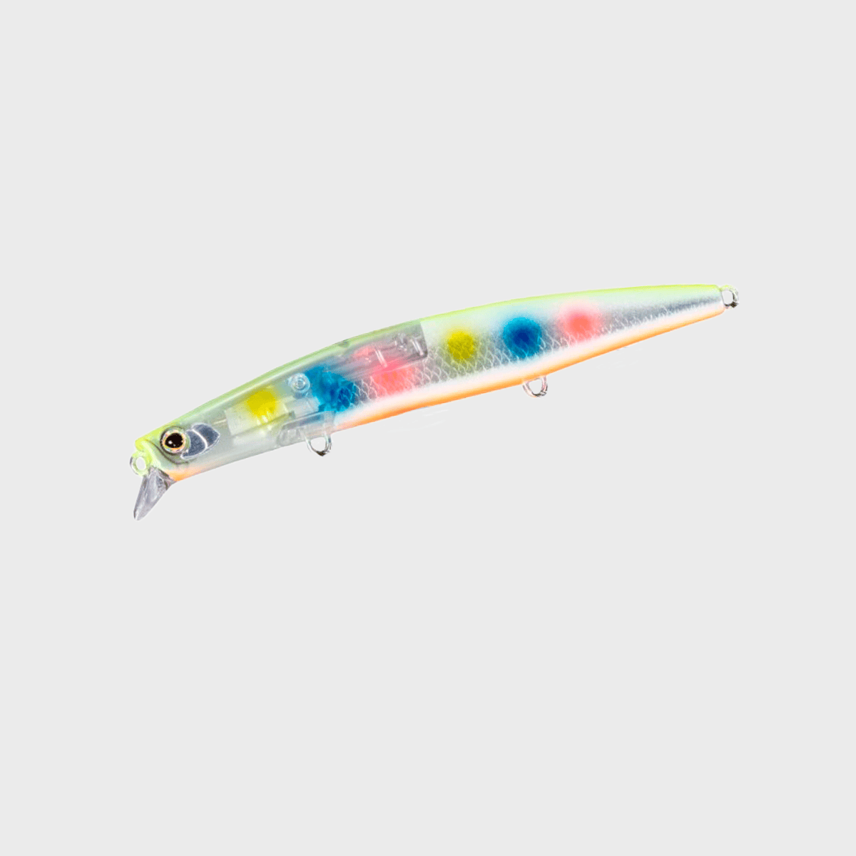 El señuelo Silent Assassin Flash Boost cuenta con un mecanismo de brillo incrementado gracias al espejo reflector que cuelga dentro del cuerpo con un resorte. Extiende el alcance del vuelo, incluso bajo vientos fuertes, y su excelente flotabilidad le permite mantenerse a flote sobre las olas, aun en condiciones difíciles. La estructura distintiva del labio en la cabeza le permite atrapar el agua y ofrecer una reacción rápida justo después de ser activado. Facilita lanzamientos extensos y exactos, generando un movimiento fluido que capta la atención de los peces de inmediato al tocar la superficie del agua.